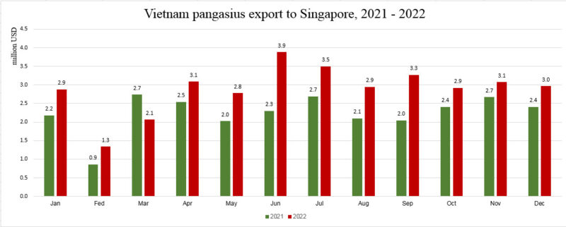 (seafood.vasep.com.vn) In the ASEAN market, Singapore is standing out thanks to the strong growth in imports of Vietnamese pangasius in the first 3 months of this year, despite the context of inflation and reduced imports in the world market. Singapore is considered as the bright spot of Vietnam pangasius exports in 2023